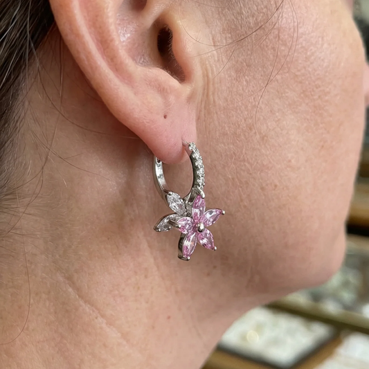 Thalia Pink Petalburst Earrings | White Gold